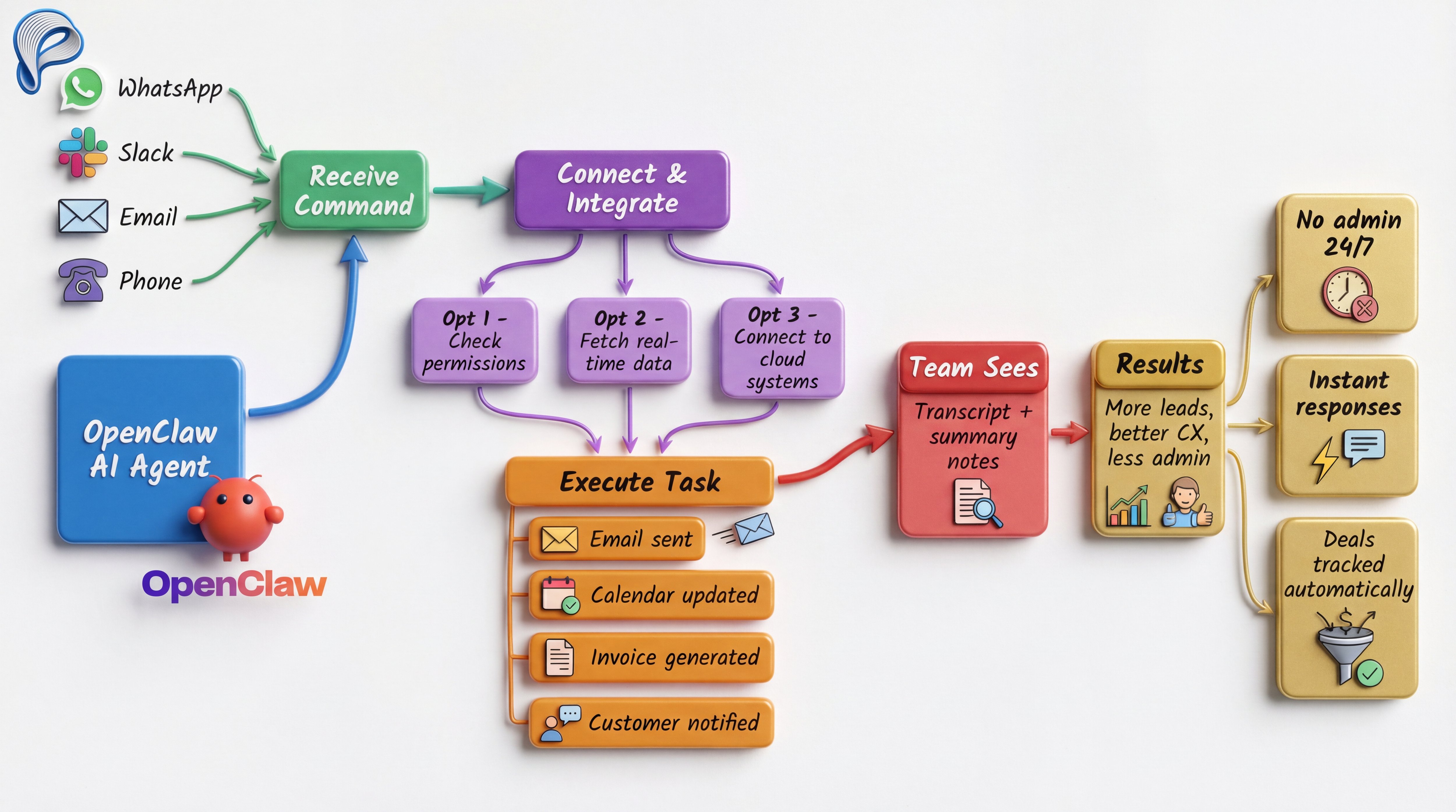 OpenClaw connects to virtually every system your business uses: